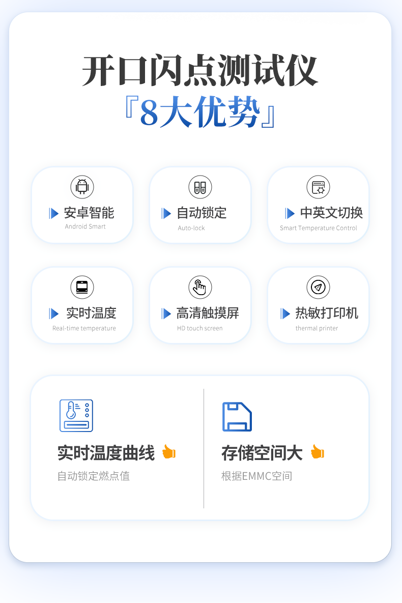 儀器按照GB/T 3536—2008方法規定的升溫曲線加熱,溫度接近預設閃點值時自動點火,當出現閃點和燃點時儀器自動鎖定結果,并顯示和打印,同時啟動風機自動對加熱器進行冷卻。