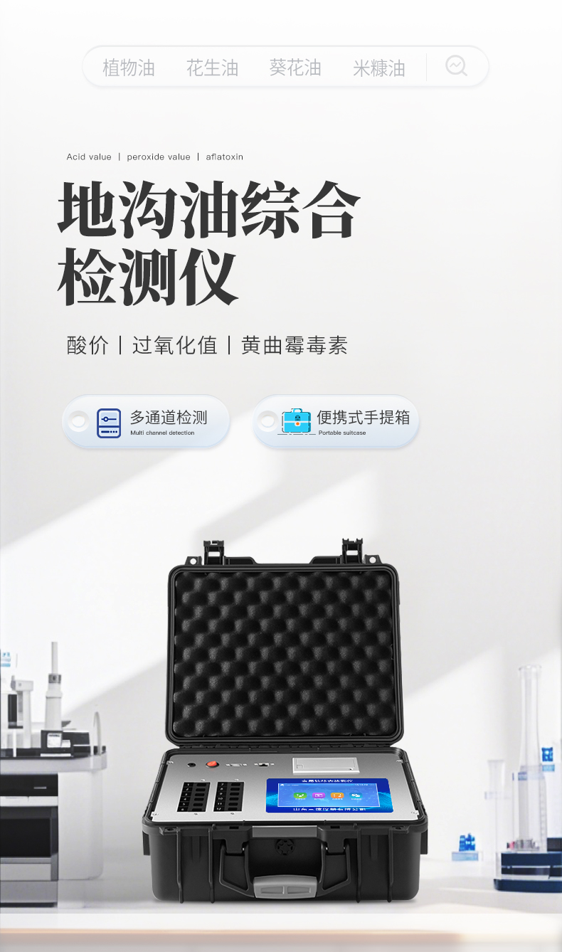 食用油安全檢測儀為集成化油品快速檢測分析設(shè)備,能夠快速檢測食用植物油、食用豬油、花生油、葵花油、米糠油、食品、肉制品中的黃曲霉毒素,苯并芘,辣椒素等含量;通過檢測可確定植物油是否符合國家標(biāo)準(zhǔn)或是否為劣質(zhì)油、地溝油等。