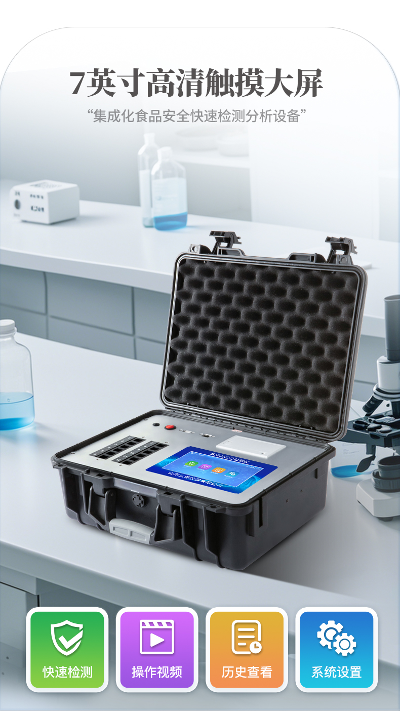 4、一體化便攜式快檢設(shè)備,滿足現(xiàn)場及流動檢測使用需求。